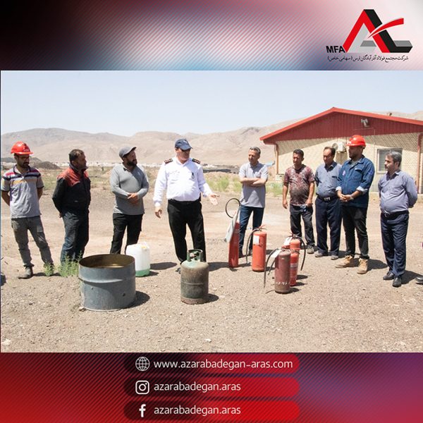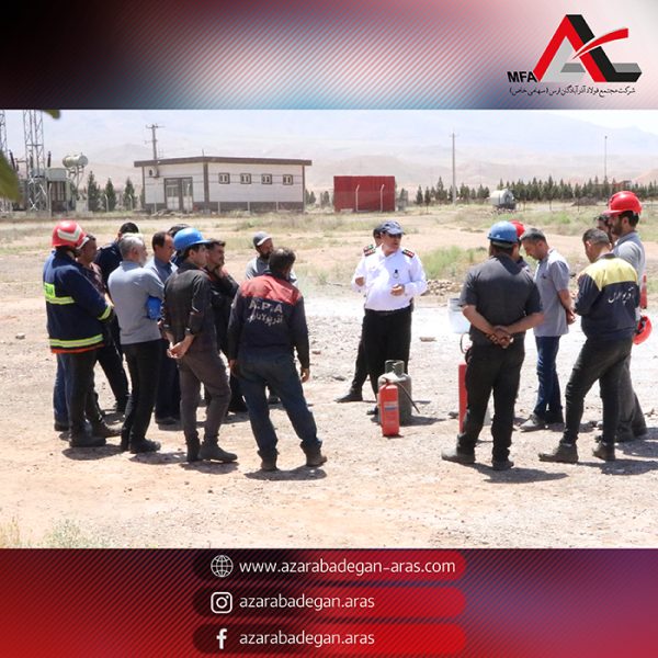 The firefighting drill training course was held on May 31, 2025, with the participation of experts from the Aras Free Zone Fire Department and the HSE unit, along with selected personnel from Azarabadegan, Tavarij Aras, Faravar Foolad, and Padideh companies.